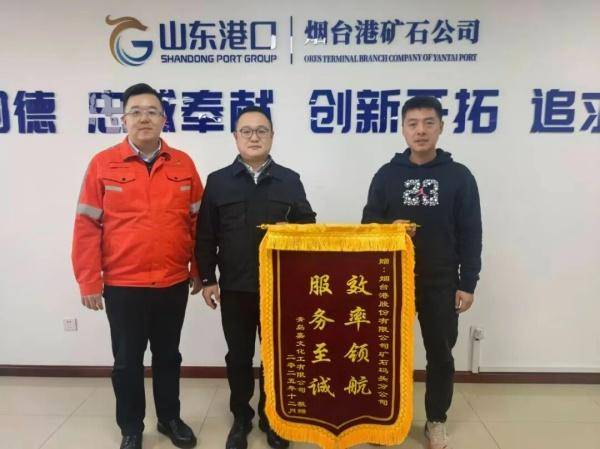 97国际-至尊品牌,源于信誉烟台港矿石公司收到来自青岛嘉文化工有限公司和烟台华恒货运代理有限公司的两面锦旗,上面分别写着:“效率领航,服务至诚”和“尽职尽责,情系客户,热心服务,暖至人心”。两面锦旗,不仅承载着客户发自内心的认可,更凝结着港企携手同行的深厚情谊,为后续合作奠定坚实基础。