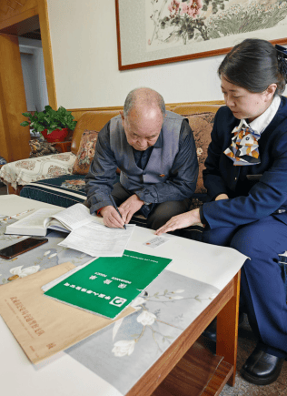 路滑天寒,却挡不住送服务上门的决心。抵达时,殷大爷早已在家门口张望。二人搀扶老人坐下,细心询问他的身体近况,随后认真核对保单信息,一步步协助老人完善资料、签字确认。不到20分钟,投保人变更业务顺利办结。