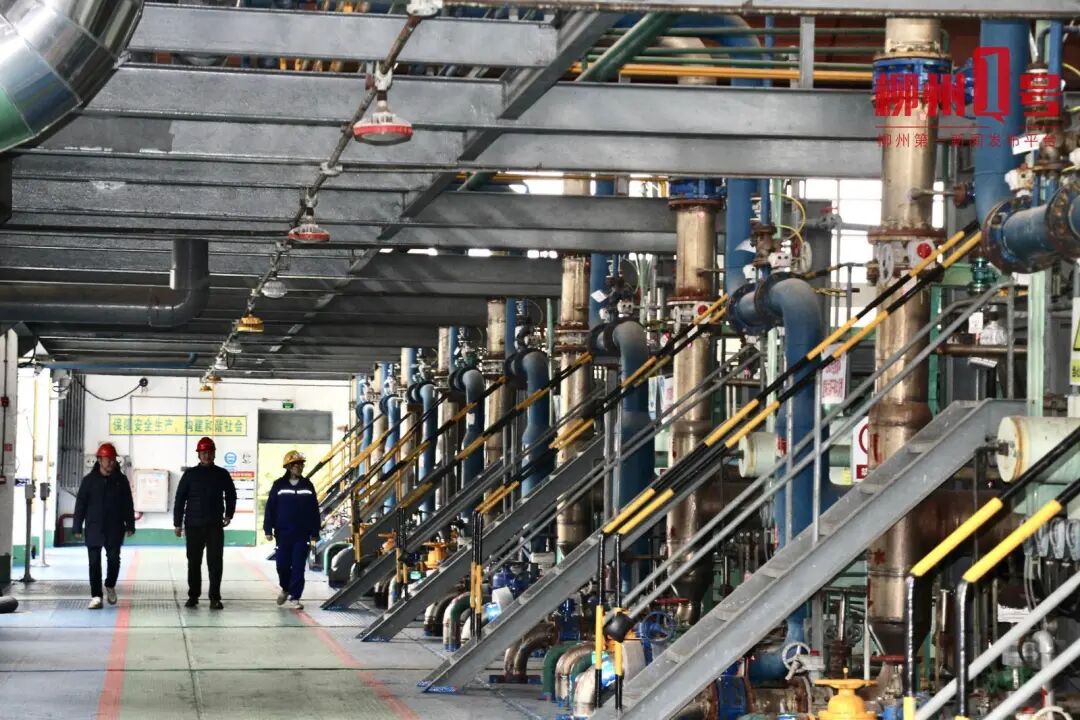 在鹿寨县化工园区,广西柳化氯碱有限公司工作人员在电解车间检查。(资料图)